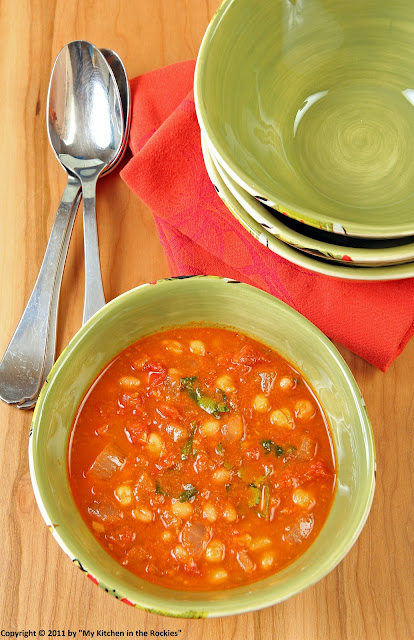 Food for my heart and health, especially with all those spices. I'm not a navy bean fan, so I'll go with the chick peas. I imagine this would also be great with lentils. Another one of my favorite legumes.