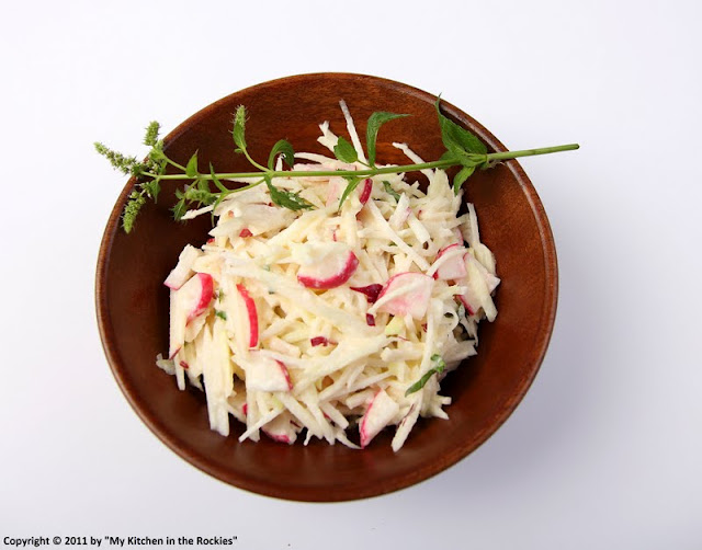 I have 3 small kohlrabi in the fridge from my farm - I don't love them, but this recipe with the apples and radishes looks like it just might entice me to use them before they rot!