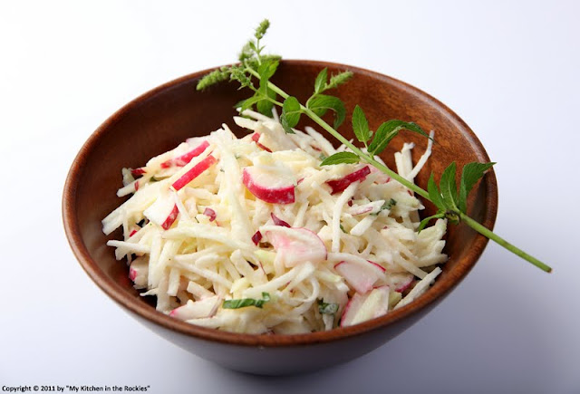 Try to find some kohlrabi at your local farmers market, and give this Kohlrabi-Apple-Radish Salad a try. I am sure you will also be preparing it over and over again.