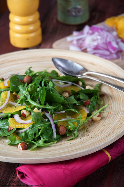 Hope you enjoy this orange-spinach-arugula salad as much as I did. It is outstanding!
