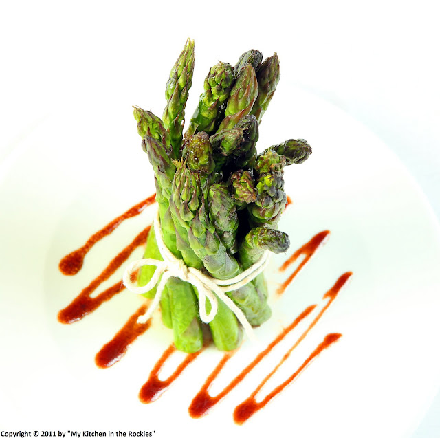 I love the presentation! I just may have to try that the next time we have friends for dinner. Asparagus is a favorite in our house - most often grilled with portabello mushrooms and red onion with balsamic vinegar, olive oil, garlic and fresh ground pepper. Yum!